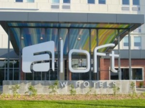 Tonight we’re staying at the aloft, an ultra techno modern hotel at Cascade Station. The rooms are very comfortable and architecturally unusual. We got the room for 50 bucks a night, thanks to Jackie’s skill for ferreting out superior hotel room rates on the internet.