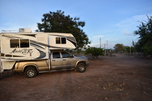 We did arrive at the campground about an hour before sunset. I was fortunate to have accurate GPS coordinates supplied by Tequila Paul. I would have driven right passed the campground if Jackie hadn’t noticed a woman off to our right waving frantically at us. I turned around and drove back towards a very nice señora who opened the gate to the compound for us.