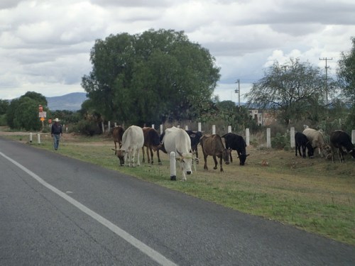 Mexican cattle grazing at the side of a busy highway. This is something that is part of the challenge of driving in Mexico. Photo source: Cozumel4you