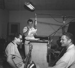 Al Cohn, Jack Kerouac and Zoot Simms, during the 1959 Hanover “Blues and Haikus” recording sessions