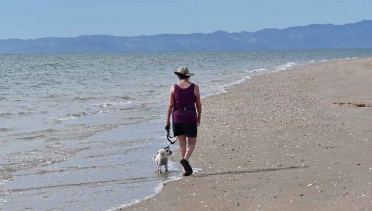 Jackie, Louis, and the Sea of Cortez: Un paseo tranquilo por la playa solitaria.