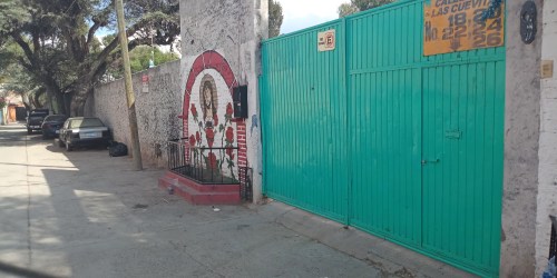 The entrance of our house was clearly visible on Google Maps street view, making Callejon de las Cuevitas 26 easy to spot, especially since the entrance is bordered by painted shrines of Jesus on one side and the Virgin Guadalupe on the other side of the steel sliding gates, and the address numbers areclearly posted on the gate: