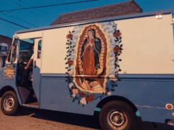 Our Lady on the side of an ice cream truck. From “Ice cream truck” by Brenda, age 15 – Boyle Heights