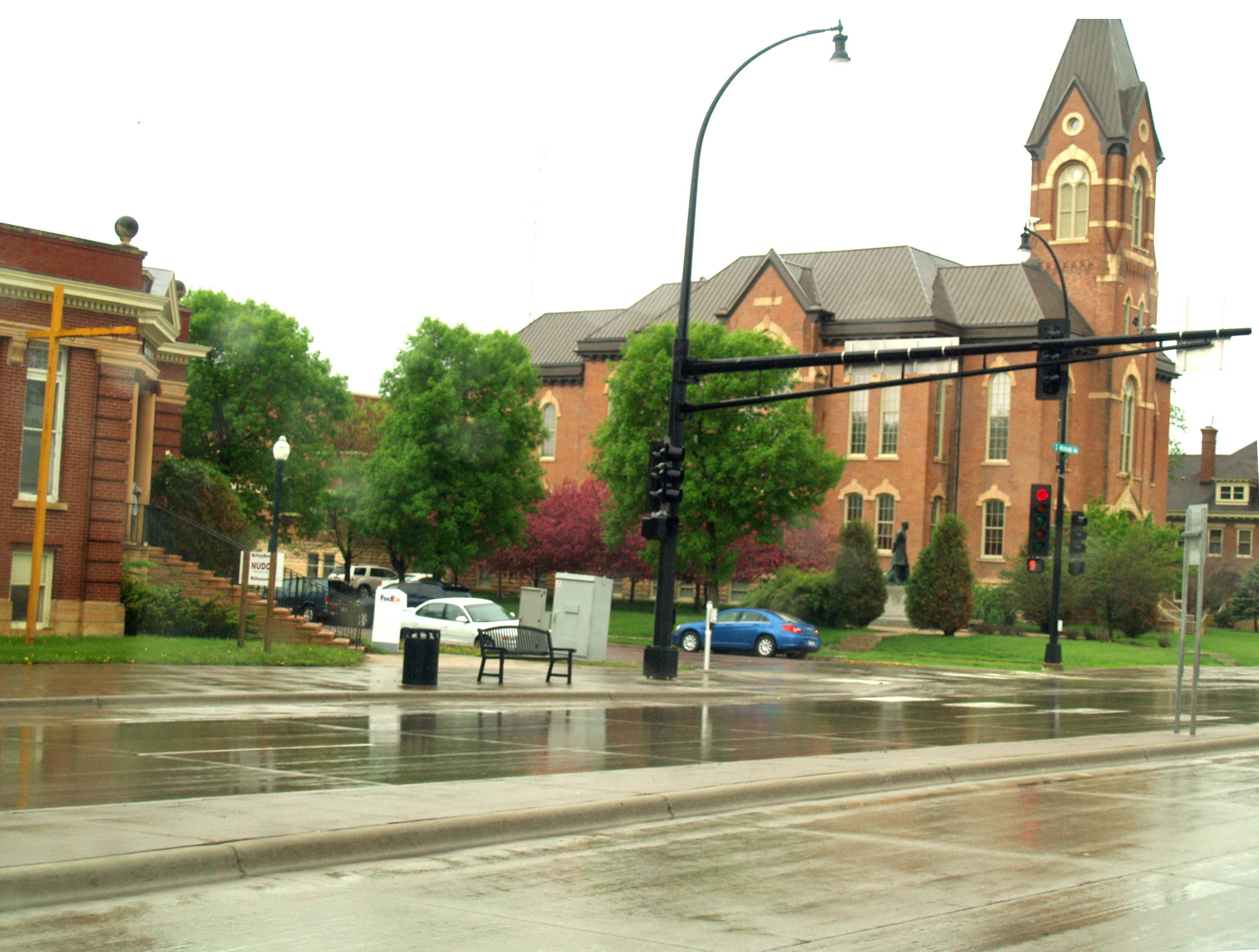 Our route took us southwest through La Seur, St Peter, Mankato, and St James, finally connecting with interstate at highway 90.  Spring showers along the way kept the temps down.  The smaller interstates go through theses small towns, so we get a chance to see some of the local downtown areas, back neighborhoods, and many older buildings, especially midwest style churches.