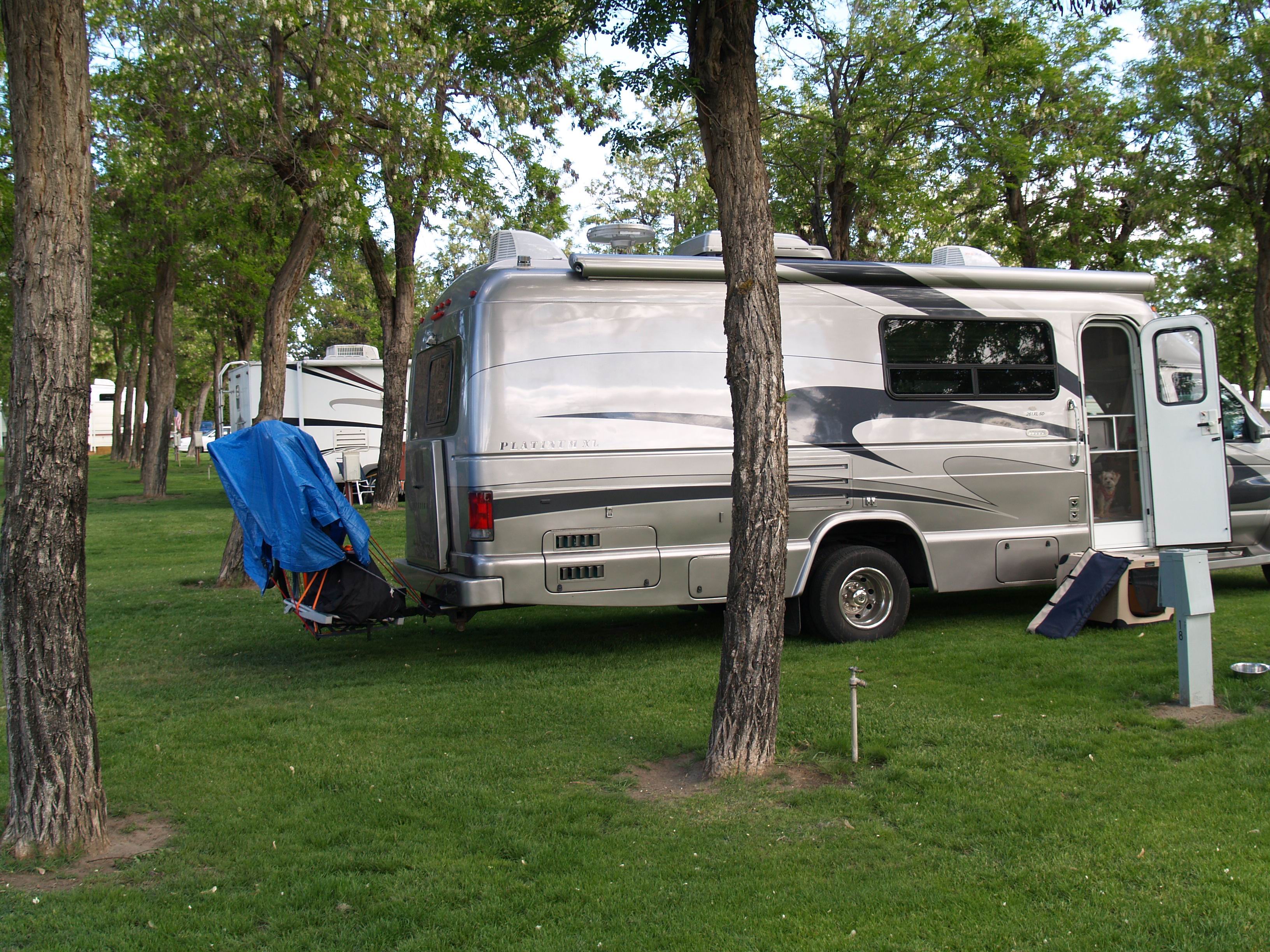 After six hours of of I-84 freeway driving, it was time for a quick Subway  s andwich dinner stop.  While waiting for Jackie to come back with the Subs, out of no where I heard a loud, metallic thud.  Checked for obvious issues underneath, saw no problems.  But now at the park the slide out is malfunctioning and the electric jacks are not working at all.  But the bed still opens, only it blocks the pass-through.  Time to problem solve:  on the road style.
