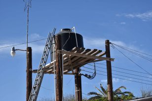 Water for RV park use is delivered in tanks and pumped into an overhead storage tank in the middle of the park.  My guess is that the tank holds 500 gals. or more 25 ft. above ground.  We definitely cannot drink the water here, or any where in Mexico, so we rely on visits to the local Modelo distributor store, Super San Pedro, where we pick up a couple of gallons of potable water every few days.